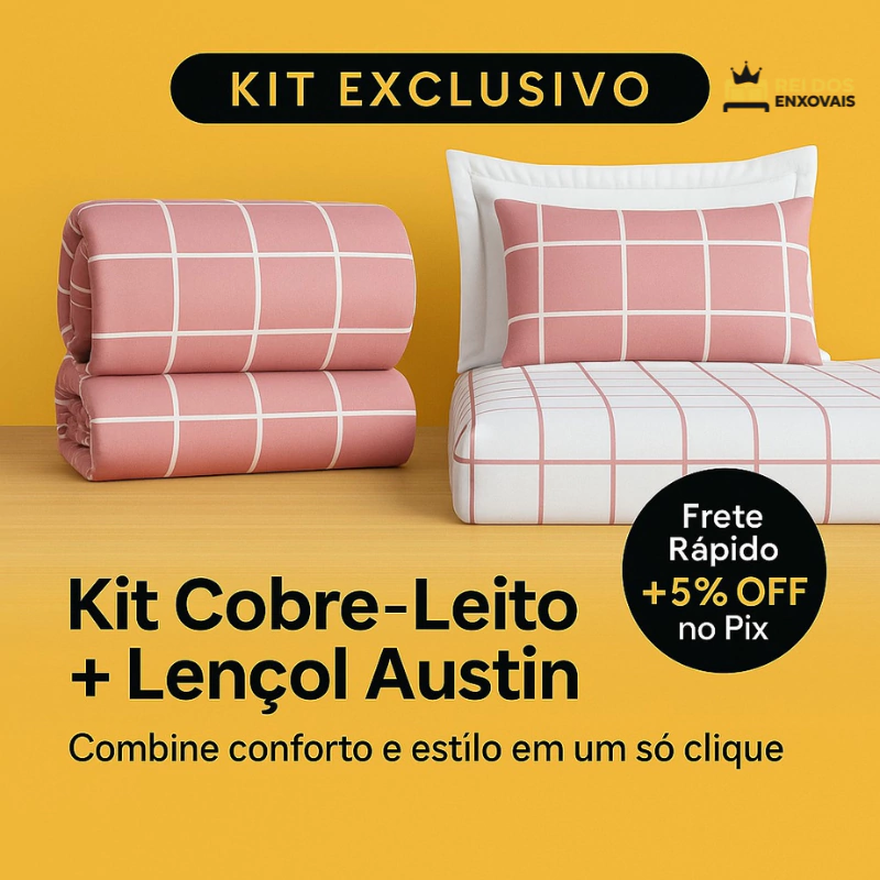 Transforme seu ambiente com o Kit Cobre Leito e Jogo de Lençol Austin Rosa. Este conjunto completo de 6 peças oferece o equilíbrio perfeito entre design moderno, conforto superior e praticidade para o dia a dia. Perfeito para quem busca renovar a roupa de cama com um visual sofisticado e minimalista.