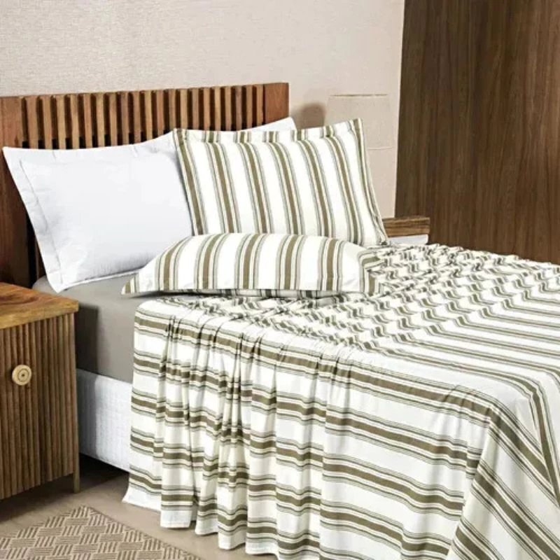 Transforme suas noites com o Jogo de Cama Marin 04 Peças, feito em malha 100% algodão com fio penteado 30/1, garantindo toque macio, resistência e durabilidade.
